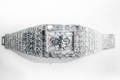 C’est une montre somptueuse digne de la haute joaillerie de luxe recouverte de diamants de la tête aux pieds