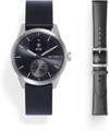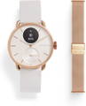 Montre Withings homme et femme: Design horloger traditionnel avec aiguilles analogiques et petit écran PMOLED discret.