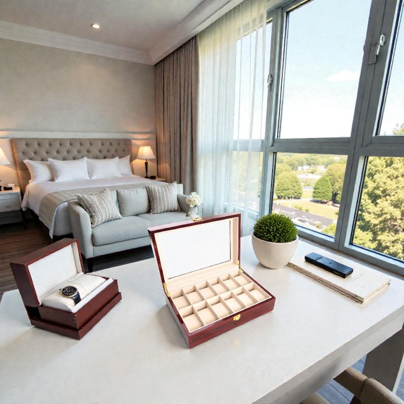 Pour 3-5 montres, une boîte de 5-8 emplacements suffit. Pour 8-12 montres, optez pour un coffret de 12-15 places. Si votre collection dépasse 15 pièces, envisagez un meuble de rangement modulaire.