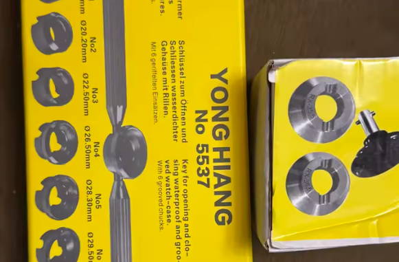 - Kit complet : 1 clé ouvre-boîtier + 7 adaptateurs de diamètres variés